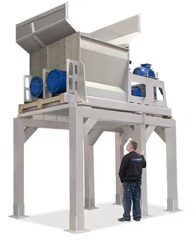Top view looking at the inside/infeed section where the whole pallets of meat raw material will be fed into the WPC 2000.